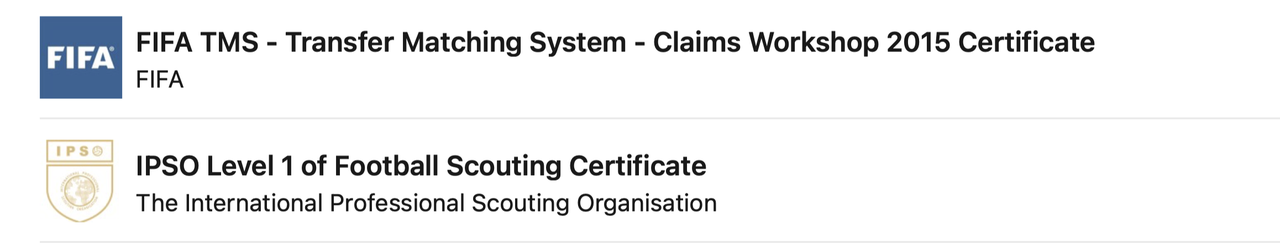 A complete overview of my professional qualifications and certificates focused on modern football leadership, strategic management, and performance development.